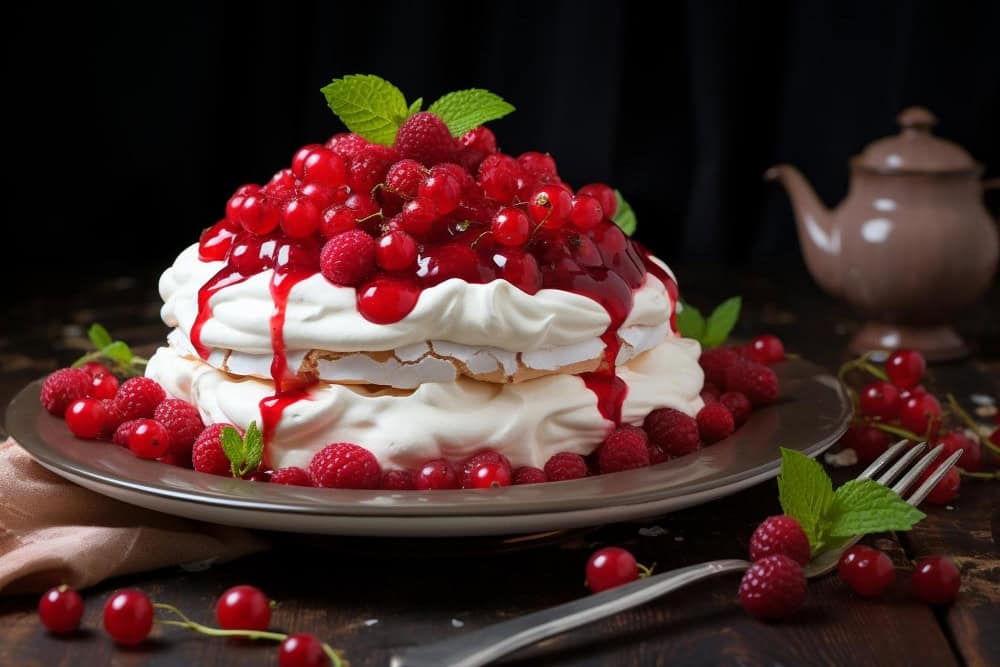 Μαρέγκα με κρέμα και φρούτα. Φτιάχτηκε για να τιμήσει τη Ρωσίδα μπαλαρίνα Άννα Πάβλοβα. Τα φρέσκα φρούτα αντικατοπτρίζουν τις ζεστές γιορτές του νότιου ημισφαιρίου.
